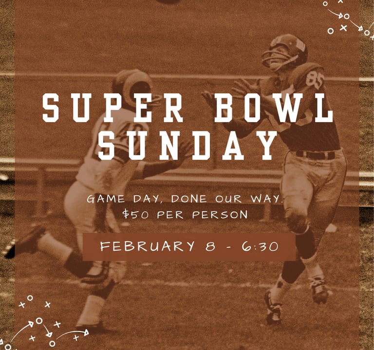 Join us for Super Bowl Sunday done The Desert Spoon way—great food, relaxed energy, and the kind of hospitality that makes you feel right at home. We’re serving up game-day favorites elevated with our chef’s touch. Settle in, cheer on your team, and enjoy the game in a comfortable, welcoming space where the focus is just as much on the food and the people as it is on the score. Kickoff. Comfort. Great food. Reserve your ticket and make Super Bowl Sunday one to savor. MENU: Mains Pulled Pork Sliders Smoked Sausage links BBQ Wings Bacon Wrapped Jalapeños Burnt End Frito Pie Sides Creamy Coleslaw German Potato Salad BBQ Beans *Chicharron Bar Avocado Salsa Habanero Salsa Salsa Matcha Queso